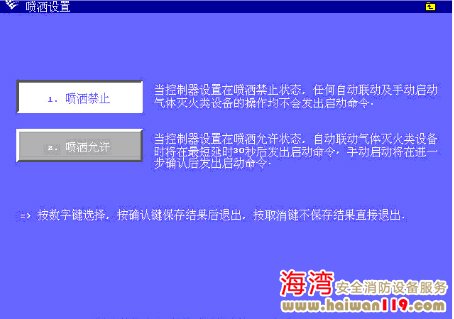 在設(shè)置里面進(jìn)入“6、噴灑設(shè)置”界面,輸入氣體操作密碼及更高級別密碼解鎖后,可將控制器設(shè)置為噴灑禁止或噴灑允許狀態(tài)。