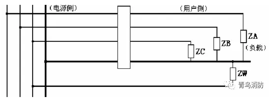 4)互感器用戶側(cè)零線有負(fù)載接到互感器前的相線,即保護(hù)區(qū)域以外的其他線路與用戶側(cè)“共零”。這種為了敷設(shè)方便的不規(guī)范線路安裝非常常見。哪怕只是走廊或強(qiáng)電電井里的幾個燈泡,就足以造成探測器報警(一個25W的燈泡產(chǎn)生的電流在200mA左右)。
